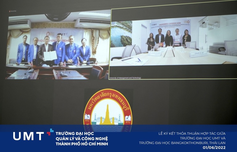 Ngày 1/6/2022 đã diễn ra Lễ ký kết hợp tác giữa Trường Đại học Quản lý và Công nghệ TP.HCM (UMT) cùng Trường Đại học BangkokThonburi (BTU, Thái Lan). Đây là một trong những hoạt động thường xuyên của Trường Đại học Quản lý và Công nghệ TP.HCM (UMT) nhằm thúc đẩy và phát triển chương trình Hợp tác liên kết quốc tế, doanh nghiệp, đại học của nhà trường.