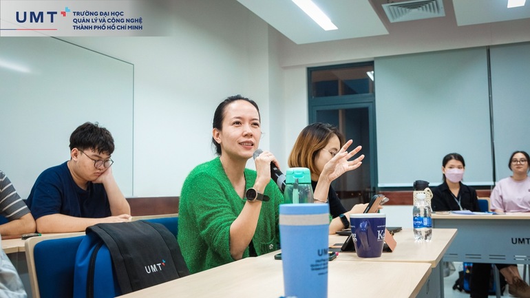 Bên cạnh đó, buổi Open Talk còn có sự tham gia của ThS. Huỳnh Thúy Phương – Phó Chủ tịch Hội đồng Trường, Phó Hiệu trưởng UMT. Cô đã đặt ra câu hỏi thảo luận cùng với diễn giả Trần Quang Đức xoay quanh vấn đề làm sao để các bạn trẻ có thể vận dụng và trau dồi “Tư duy lịch sử” trong suốt hành trình phát triển của bản thân. Đây là kỹ năng – năng lực mà các bạn sinh viên cần rèn luyện để có thể cởi mở hơn cũng như có góc nhìn khách quan hơn về những vấn đề trong cuộc sống.