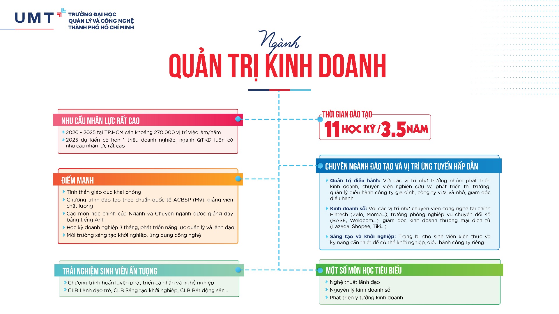 With the orientation of training a team of startup innovators and senior business executives, Business Administration (BA) at UMT equips students with knowledge and mindset related to starting-up, managing brands, establishing and implementing business models as well as necessary skills in the current business context and 4.0 trends such as: digital business, change management, fundraising... With the model of a start-up incubator and externships, students of Business Administration also have the opportunity to experience in the real-life multinational corporation and large enterprise environment; be selected and participate in management trainee programs; be trained by a team of mentors who are young domestic and overseas entrepreneurs.