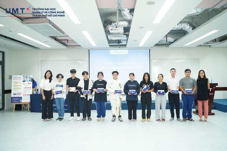 Thông qua Chương trình “UMTers thấu hiểu hệ Gen - Định hướng thành công” do UMT phối hợp cùng Genetica xây dựng, các bạn sinh viên đã có cơ hội tìm hiểu về phương pháp giải mã Gen kết hợp với trí tuệ nhân tạo để biết được Chỉ số thông minh (IQ), Trí tuệ cảm xúc (EQ), Xu hướng mạo hiểm, Cảm xúc bất ổn, Khuynh hướng… để có thêm thông tin tham khảo cho hành trình thấu hiểu của bản thân mình.