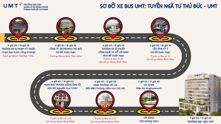 Tin vui dành cho UMTers! Từ năm 2025, UMT chính thức ra mắt thêm lộ trình xe bus mới hoàn toàn miễn phí, kết nối trực tiếp với tuyến Metro, mang đến giải pháp di chuyển tối ưu cho giảng viên, nhân viên và sinh viên.