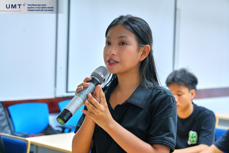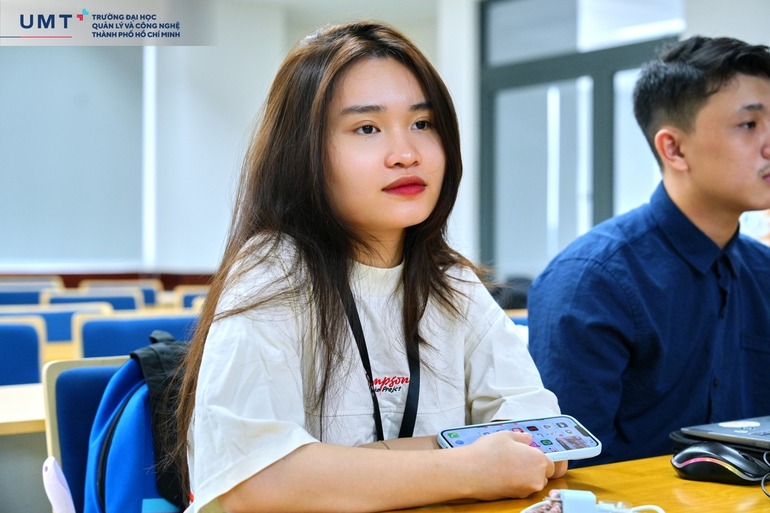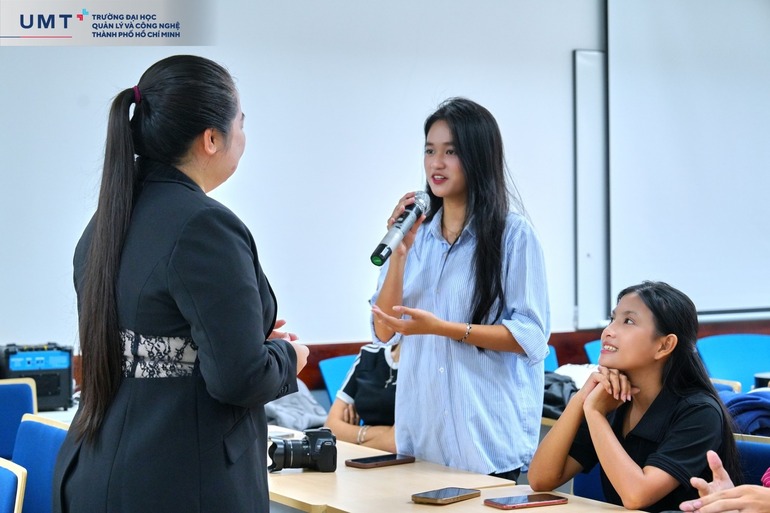 Sự kiện còn có phần chia sẻ từ anh Đỗ Như Toàn – chuyên viên Media, Phòng Tuyển sinh và Truyền thông, Trường UMT. Anh trực tiếp minh họa về cách chọn góc máy, thiết lập khung hình và vận hành thiết bị quay. Nhờ đó, sinh viên được "mục sở thị” các kỹ thuật ghi hình cụ thể.