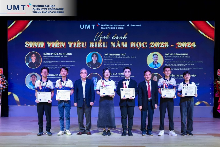 Tại Lễ Khai giảng năm học mới 2024 - 2025 vừa qua, Trường Đại học UMT đã vinh danh 10 sinh viên tiêu biểu của năm học 2023 - 2024 trong không khí long trọng. Bên cạnh đó, Nhà trường cùng các đơn vị đối tác cũng đã trao nhiều suất học bổng danh giá đến các bạn tân sinh viên Khóa 3 với tổng trị giá hơn 68 tỷ đồng.