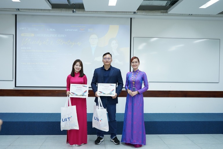 Vừa qua, sinh viên UMT đã có cơ hội tham gia Workshop "Career Development Journey: Mindset & Strategies" với sự góp mặt của hai diễn giả giàu kinh nghiệm. Chương trình mang đến góc nhìn thực tiễn về tư duy chiến lược và các kỹ năng quan trọng để thành công trong môi trường làm việc hiện đại.