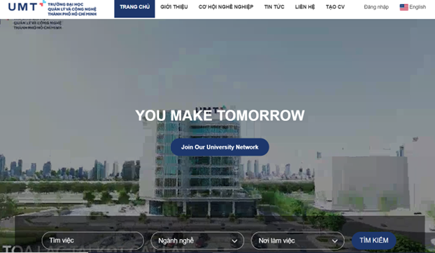 Đặc biệt, cổng thông tin việc làm sinh viên được xây dựng chuyên biệt cho UMT với thiết kế riêng, tổng hợp các vị trí tuyển dụng phù hợp với thế mạnh đào tạo của Trường. Sinh viên có thể chủ động tạo tài khoản để nhận được nguồn cơ sở dữ liệu đa dạng về việc làm. Đây sẽ là cầu nối vô cùng hữu dụng giữa sinh viên UMT và các nhà tuyển dụng tiềm năng.