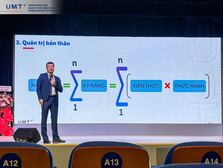 Bước vào năm học mới 2025 - 2026, chương trình Sinh hoạt công dân dành cho tân sinh viên tại Trường Đại học Quản lý và Công nghệ TP.HCM (UMT) đã khởi động với phần chia sẻ đầy cảm hứng của TS. Nguyễn Cảnh Tuấn - Phó Hiệu trưởng UMT, xoay quanh câu chuyện “Quản trị cuộc đời”.