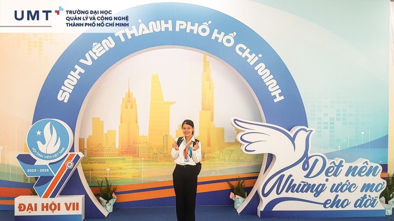 Đại diện đầu tiên lan tỏa hình ảnh sinh viên UMT là bạn VÕ THỊ NGỌC HÂN - Sinh viên ngành Marketing Khóa 1 tham dự Đại hội Đại biểu Hội Sinh viên Việt Nam TP.HCM lần thứ VII, nhiệm kỳ 2023 - 2028