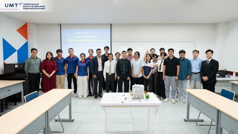 Sau 3 tháng phát động và triển khai, vừa qua, vòng Chung kết cuộc thi Ý tưởng nghiên cứu khoa học UMT 2025 đã diễn ra trong không khí sôi nổi, kết nối gần 100 sinh viên, học sinh đến từ UMT, Trường Trung cấp Công nghệ thông tin Sài Gòn (SITC) và Trường Phổ thông Duy Tân, cùng 19 đề tài tranh tài ở hai tiểu ban: Công nghệ – Kỹ thuật và Văn hóa – Xã hội.