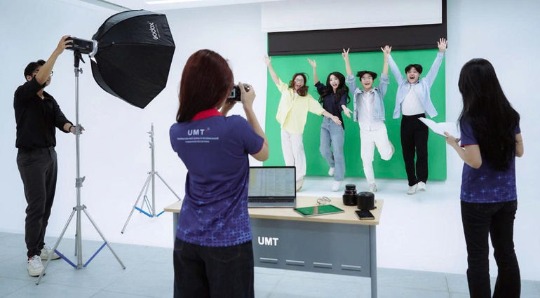 Sinh viên ngành Truyền thông đa phương tiện sản xuất sản phẩm truyền thông tại studio của tại Trường Đại học UMT.
