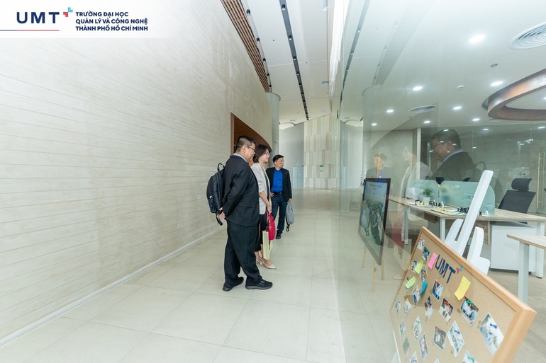 Tiếp đón Đoàn đại diện Curtin Malaysia, Ban Lãnh đạo và Ban Giám hiệu UMT có sự hiện diện của: ThS. Huỳnh Thúy Phương – Phó Chủ tịch Hội đồng Trường, Phó Hiệu trưởng; PGS. TS. Hồ Thanh Phong - Phó Hiệu trưởng Phụ trách Đào tạo; PGS. TS. Trần Đan Thư – Trưởng Khoa Công nghệ; TS. Trần Nam Quốc – Trưởng Khoa Kinh doanh; PGS. TS. Phạm Hương - Trưởng Phòng PTCT&BĐCL.