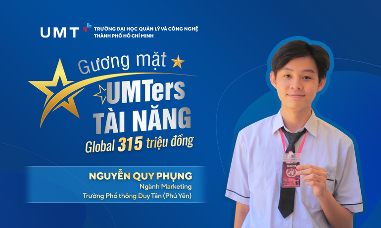 Hôm nay, chúng ta sẽ gặp gương mặt UMTers tài năng đến từ Trường Phổ thông Duy Tân (Phú Yên) với Học bổng toàn khóa Global 315 triệu đồng, ngành Marketing. Bạn chính là Nguyễn Quy Phụng, với hàng loạt thành tích danh giá đáng ngưỡng mộ:
