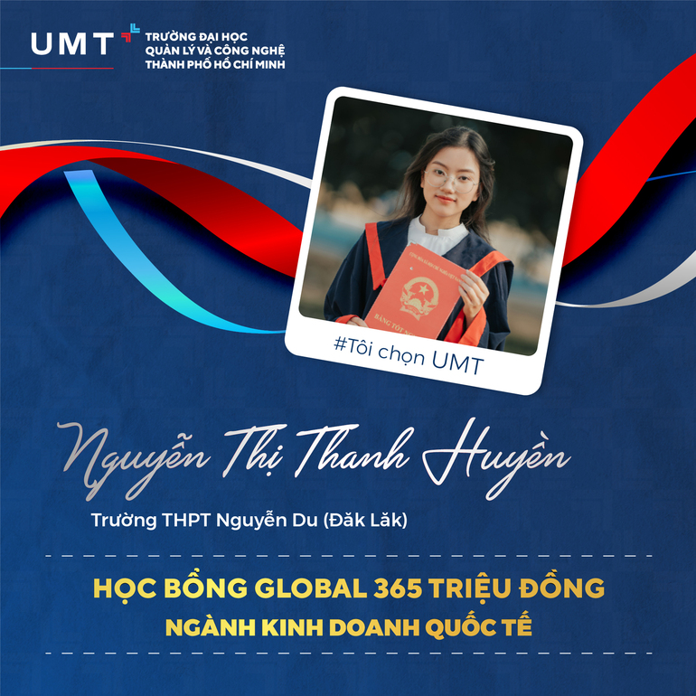 Trong niềm tự hào khi được trở thành thế hệ sinh viên tiên phong tại UMT, Thanh Huyền gửi gắm nhiều kỳ vọng vào những ngày tháng thanh xuân tại giảng đường: “Môi trường có ảnh hưởng rất lớn đến chúng ta, và UMT là một môi trường giáo dục khai phóng, năng động, lấy người học làm trung tâm. Chương trình đào tạo định hướng quốc tế của UMT có nhiều hoạt động thú vị và đổi mới sáng tạo. Đặc biệt, với mô hình thực học - thực nghiệp, sinh viên ngành Kinh doanh quốc tế sẽ được trải nghiệm doanh nghiệp từ sớm. Hơn hết, được dẫn dắt bởi đội ngũ chuyên gia giáo dục tận tâm và giàu kinh nghiệm, người học không chỉ được học kiến thức, mà còn được rèn luyện cách tư duy và cách thích ứng trong thời đại toàn cầu. Học tập tại UMT chính là cơ hội để em mở rộng tư duy, phát triển những kỹ năng cần thiết của một công dân toàn cầu và đóng góp giá trị cho xã hội.