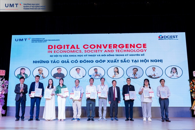 Trong khuôn khổ hội nghị, UMT cũng đã vinh danh 9 tác giả xuất sắc với các công trình nghiên cứu tiềm năng. DCEST UMT 2024 nhận được gần 90 tóm tắt/công trình nghiên cứu của các học giả, nhà nghiên cứu, giảng viên, sinh viên trong nước và quốc tế gửi về tham dự. Trong đó có 35 tóm tắt công trình nghiên cứu từ Trường Đại học UMT.