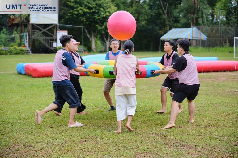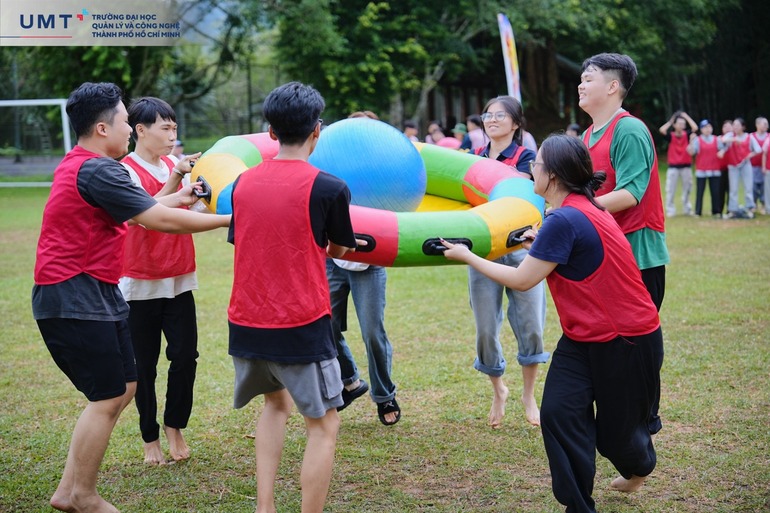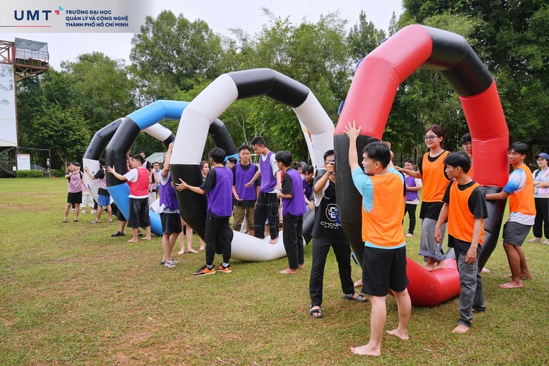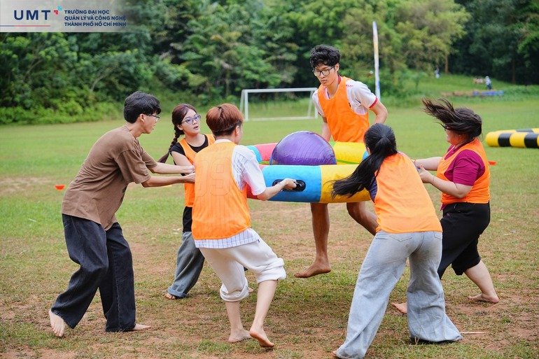 Team building: Những trò chơi vận động tập thể trên sân cỏ đã làm bùng nổ tinh thần thi đua và gắn kết. Các bạn trẻ cùng nhau vượt chướng ngại vật, chuyền bóng tiếp sức, phối hợp giải mật mã… để giành chiến thắng. Mỗi thử thách là một trải nghiệm giúp rèn luyện sự khéo léo, kiên trì và tinh thần đồng đội.