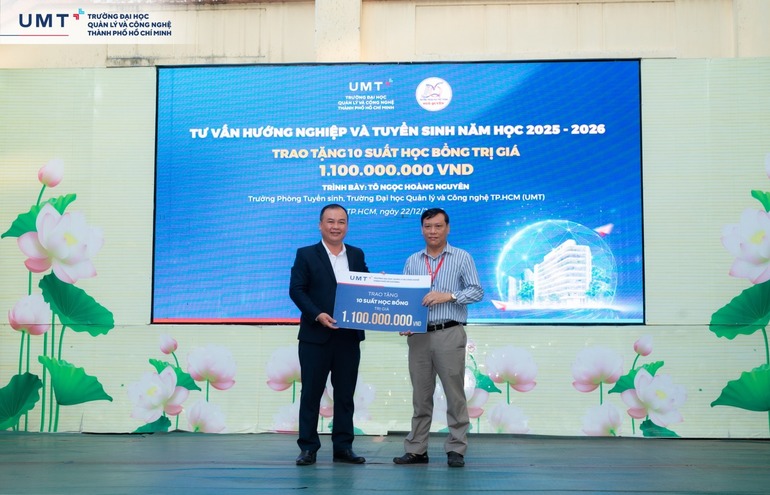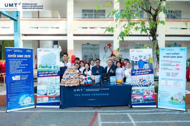 Trong chuyến hành trình tư vấn hướng nghiệp đầy ý nghĩa, Trường Đại học UMT đã có cơ hội giao lưu, gặp gỡ hơn 2.000 học sinh Trường THPT Ngô Quyền (TP.HCM) và trao 10 suất học bổng với tổng giá trị 1,1 tỷ đồng cho các học sinh xuất sắc của Trường.