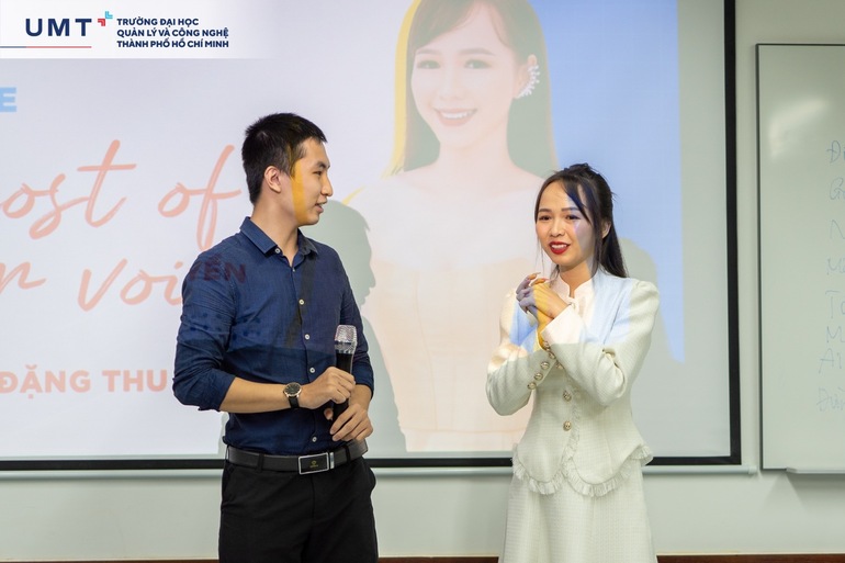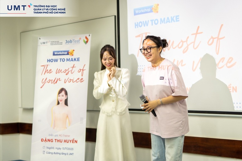 Chiều ngày 13/7/2023 vừa qua, UMT đã tổ chức thành công Workshop đầu tiên “How to Make the Best of Your Voice” trong chuỗi sự kiện “How Make” của UMT với sự dẫn dắt của MC, Trainer Đặng Thu Huyền - Người sáng lập và Giám đốc Điều hành Trung tâm Đào tạo Kỹ năng Danshari. Buổi chia sẻ đã mang đến những kiến thức quý giá về cách tận dụng hết tiềm năng của giọng nói.