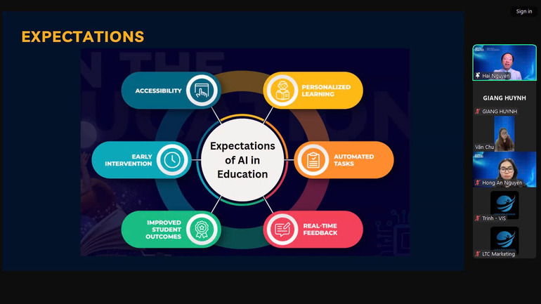 Với sự dẫn dắt của TS. Nguyễn Thành Hải - Trưởng nhóm nghiên cứu tại Chương trình Giáo dục STEM THRIVE của Đại học Missouri (Hoa Kỳ); Viện trưởng Viện STEAM, Trường Đại học Quản lý và Công nghệ TP.HCM (UMT), Webinar đã cung cấp góc nhìn tổng quan về những ứng dụng AI mới nhất, đồng thời giúp định hình cách mà công nghệ có thể tạo ra những thay đổi sâu rộng trong lĩnh vực giáo dục.