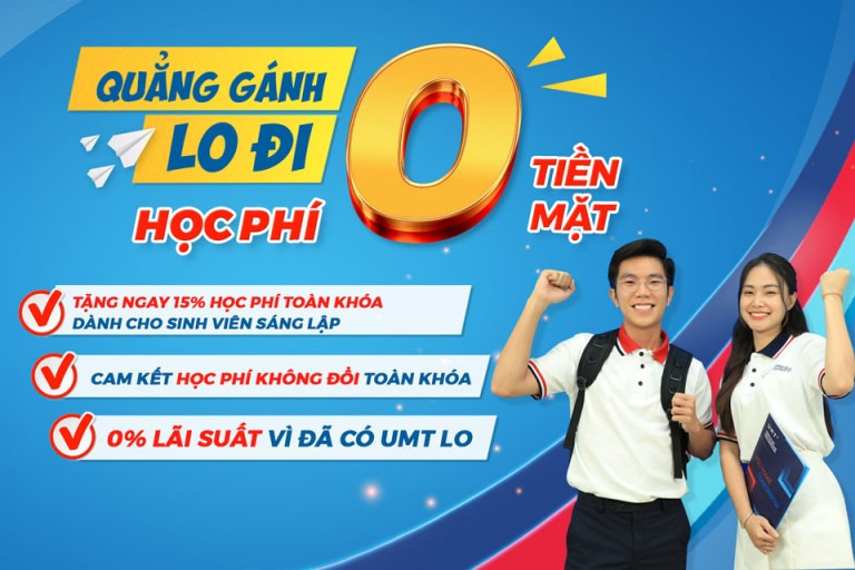 Với mong muốn đồng hành cùng sinh viên và gia đình, UMT đã xúc tiến hợp tác cùng các ngân hàng đối tác chiến lược của Trường, giúp UMTers “quẳng gánh lo đi” và thoải mái nhập học với chương trình “Học phí 0 tiền mặt”. Cụ thể, UMT liên kết với ngân hàng để ngân hàng thanh toán học phí trước thay cho sinh viên thông qua thẻ tín dụng. Sau đó, sinh viên sẽ đóng khoản này cho ngân hàng hàng tháng và không chịu bất kỳ khoản lãi suất nào, vì đã có UMT hỗ trợ lãi suất 0% với thời hạn 3, 6, 9 hoặc 12 tháng (tất cả chi phí chuyển đổi phát sinh do UMT thanh toán). Bằng cách này, các bạn sẽ hoàn toàn chủ động về kinh tế, đồng thời có thể tiết kiệm lãi suất ngân hàng so với vay vốn học tập hoặc trả góp thông thường.