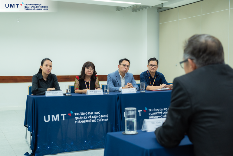 Về phía UMT, có sự tham gia của: ThS. Huỳnh Thúy Phương – Phó Chủ tịch Hội đồng Trường, Phó Hiệu trưởng; TS. Bùi Thị Lan Hương – Trưởng Phòng Đối ngoại và Quản lý Nghiên cứu Khoa học; Ông Nguyễn Ngọc Nguyên – Giám đốc Phòng Công nghệ thông tin và Chuyển đổi số.