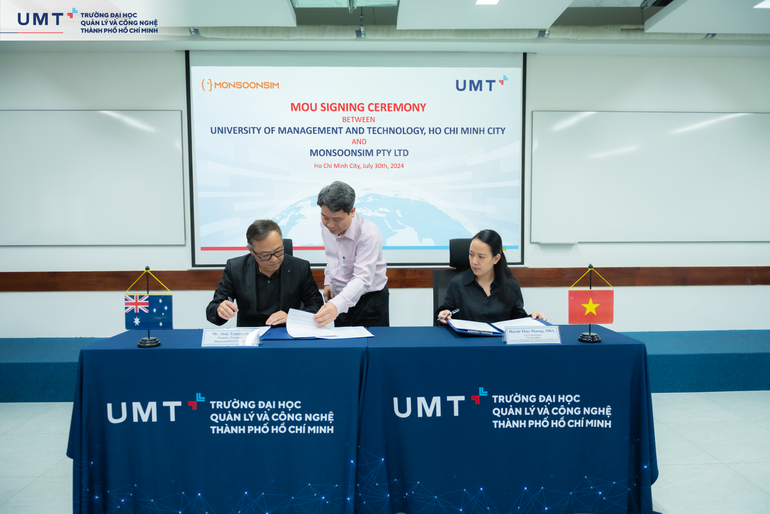 Nhằm đẩy mạnh chuyển đổi số và ứng dụng công nghệ vào giảng dạy, ngày 30/7/2024, Trường Đại học UMT đã vinh dự đón tiếp và tiến hành ký kết hợp tác với Công ty MonsoonSIM (Úc) để thực hiện triển khai thực hành quản trị doanh nghiệp thông qua trò chơi mô phỏng doanh nghiệp trên máy tính.