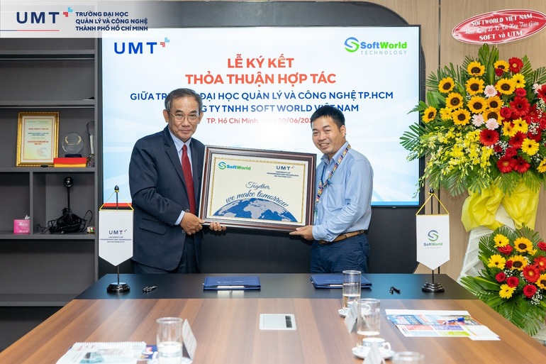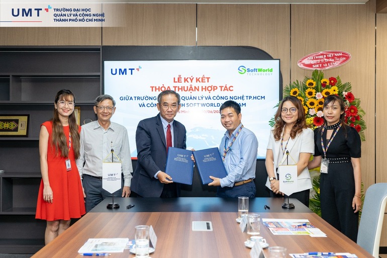 Sáng ngày 20/6/2023 tại Tòa nhà Sáng tạo, Trường Đại học Quản lý và Công nghệ TP.HCM (UMT) đã diễn ra lễ ký kết hợp tác giữa Nhà trường cùng Công ty TNHH Soft World Việt Nam, công ty công nghệ thông tin có vốn đầu tư từ Nhật Bản.