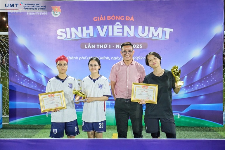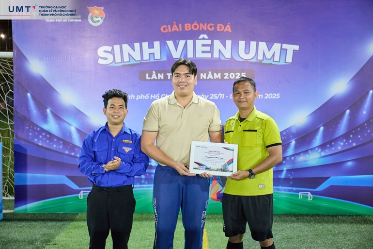 Khép lại 14 trận đấu đầy gay cấn của 9 đội bóng Nam – Nữ, Lễ Bế mạc Giải Bóng đá Sinh viên UMT lần 1 được tổ chức trong không khí trang trọng và giàu cảm xúc, với sự tham dự của Ban Giám hiệu Nhà trường, đại diện nhà tài trợ Rehub, quý Thầy Cô các phòng, khoa cùng đông đảo sinh viên UMT. Chương trình mở đầu bằng các tiết mục văn nghệ sôi động, tiếp nối là phần tri ân đội ngũ trọng tài và nhà tài trợ, những người đã đồng hành, góp phần tạo nên một mùa giải công bằng, chuyên nghiệp và đầy cảm hứng.