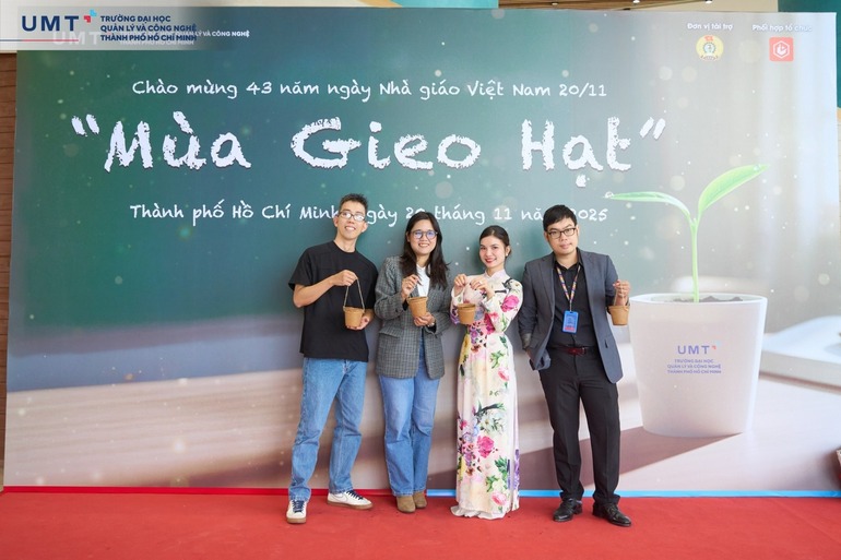 Từ sáng sớm, đội ngũ GVNV UMT đã vô cùng bất ngờ với những phần quà nhỏ, tượng trưng cho hạt giống tri thức, thay cho lời cảm ơn chân thành dành cho những người miệt mài gieo mầm yêu thương và kiến thức tại UMT. Photobooth “Mùa gieo hạt” và Quà tặng “Gieo mầm tri thức” do chính tay các bạn sinh viên chuẩn bị đã trở thành một vườn kỷ niệm rực rỡ giữa Thầy Cô và sinh viên trong dịp 43 năm kỷ niệm Ngày Nhà giáo Việt Nam.