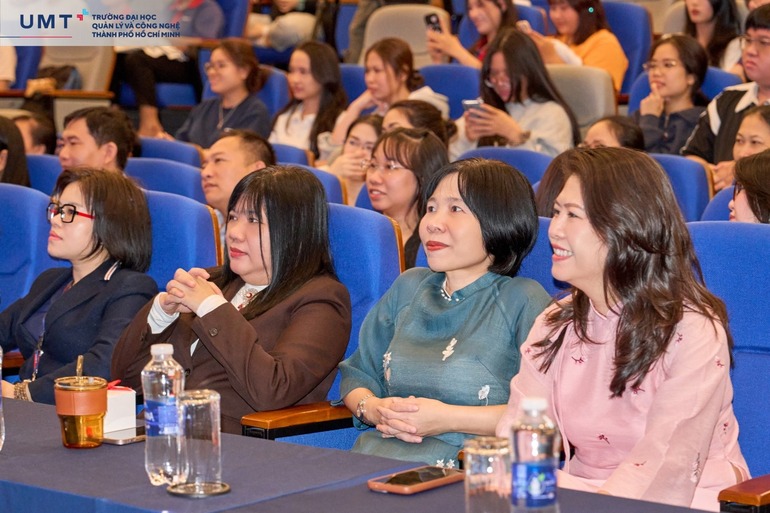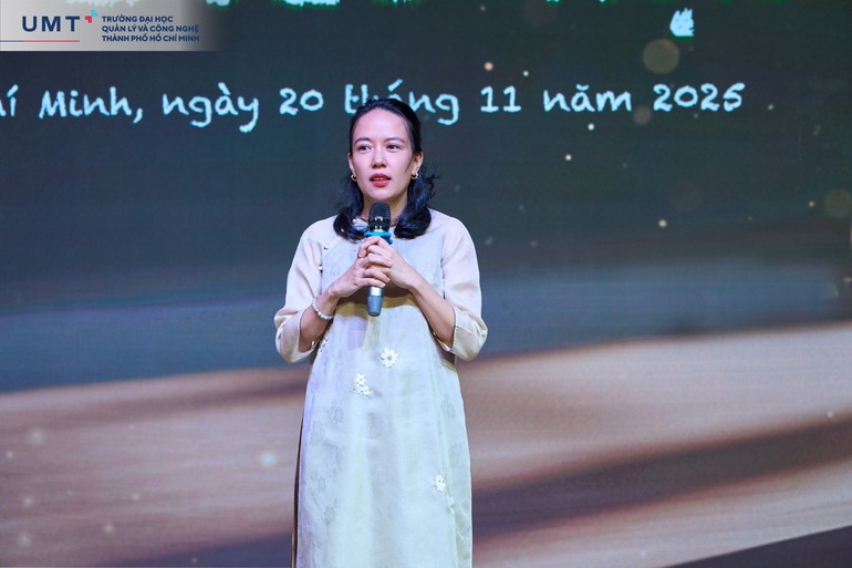 Bầu không khí càng trở nên xúc động hơn khi ThS. Huỳnh Thúy Phương - Phó Chủ tịch Hội đồng Trường, Phó Hiệu trưởng Nhà trường, tâm huyết chia sẻ: “Cô rất vinh dự khi được trở thành Cô của các bạn sinh viên UMT. Khi nghe rằng đây có thể là chương trình cuối cùng tại UMT của các sinh viên Khóa 1 được đóng góp tổ chức, được tham gia sáng tạo cùng nhau, Cô không thể ngừng rơi nước mắt. Không dừng lại khi các bạn ra trường, Cô và toàn thể Thầy Cô tại UMT cam kết sẽ luôn luôn đồng hành và hỗ trợ các bạn trên con đường phía trước”.