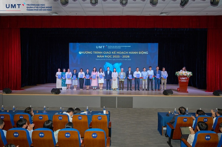 Đáp lại sự tin tưởng và tấm lòng trân quý của tập thể sinh viên UMT, Nhà trường cũng tổ chức Chương trình giao Kế hoạch hành động năm học 2025 - 2026, nhấn mạnh định hướng và kế hoạch cho năm học mới với các mục tiêu nổi bật:
