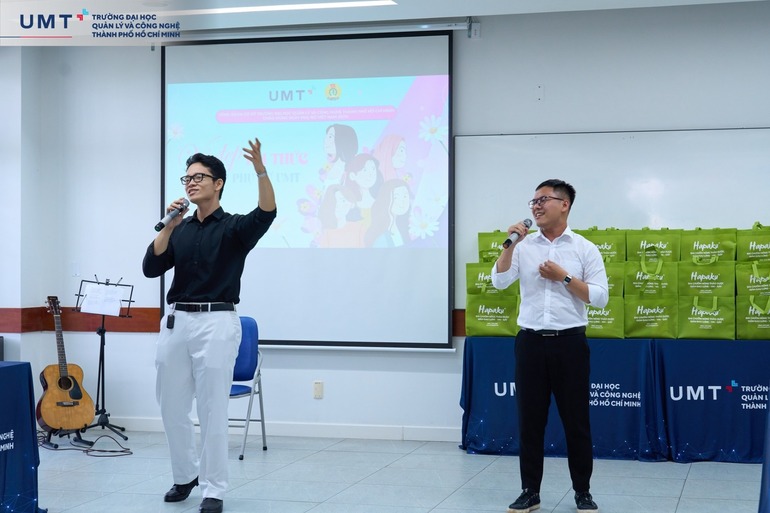 Không khí thêm phần rộn ràng với những tiết mục văn nghệ hấp dẫn đến từ các “anh trai say hi Nhà UMT” thể hiện tình cảm chân thành, sự trân trọng dành cho một nửa yêu thương của UMT.