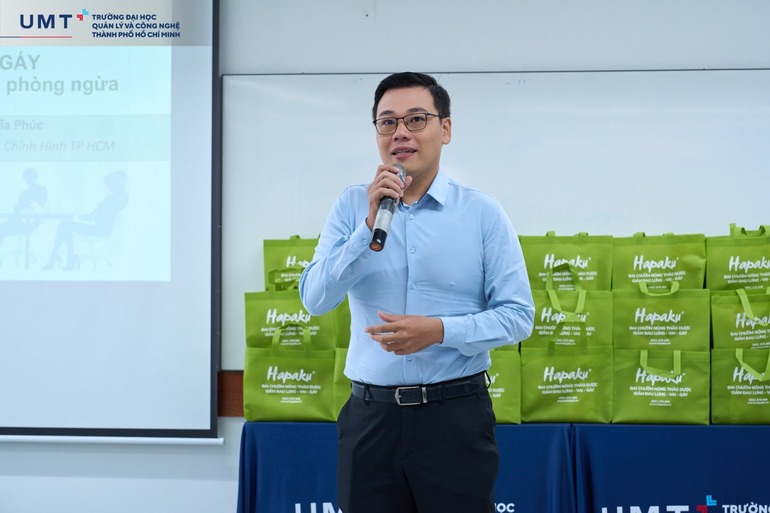 Điểm nhấn đặc biệt của chương trình là Workshop “Chăm sóc và phòng ngừa hội chứng đau Cổ - Vai - Gáy”, mang đến những kiến thức bổ ích về chăm sóc sức khỏe thể chất và tinh thần. Phái nữ UMT có cơ hội hiểu rõ hơn về nguyên nhân, dấu hiệu và phương pháp phòng tránh căn bệnh thường gặp ở người làm công việc văn phòng.
