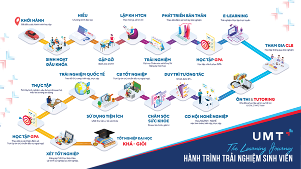 “Học mà chơi - chơi mà học” là xu hướng mà các trường đại học đang ngày càng hướng tới nhằm trang bị cho sinh viên kỹ năng cần thiết sau khi ra trường. Tại UMT, sinh viên tự mình phấn đấu, rèn luyện, tìm kiếm các hoạt động ngoại khóa phù hợp với tính cách, ngành học được nhà trường hướng dẫn, xây dựng lộ trình trở thành UMTer với mô hình phát triển toàn diện 5 khía cạnh: Thành công trong học tập - Lộ trình phát triển nghề nghiệp - Trách nhiệm cộng đồng - Trải nghiệm quốc tế - Lãnh đạo bản thân. Với việc tôn trọng sự khác biệt của từng sinh viên, UMT tạo chất xúc tác để sinh viên có thể bộc lộ thế mạnh của mình và trau dồi có chọn lọc những kỹ năng, tố chất còn yếu. Từ đó phát huy toàn diện năng lực cá nhân, hướng đến tinh thần khai phóng, hội nhập quốc tế.
