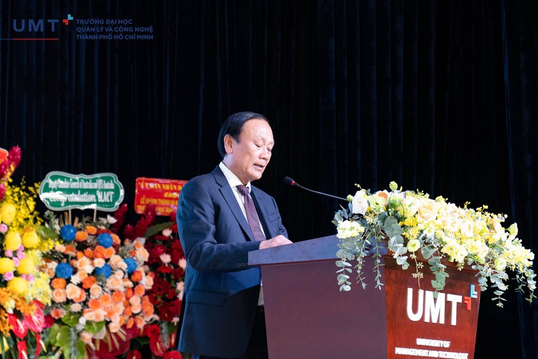 Phát biểu tại buổi lễ, Thứ trưởng Bộ Giáo dục – Đào tạo Nguyễn Văn Phúc gửi lời chúc mừng tốt đẹp đến tập thể giảng viên, sinh viên UMT nhân dịp lễ khánh thành trường và khai giảng năm học mới.
