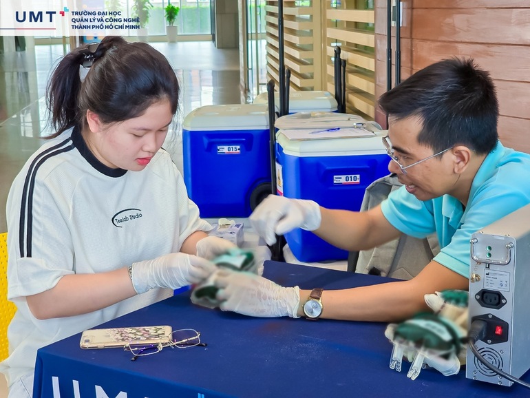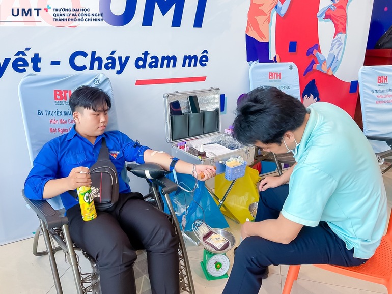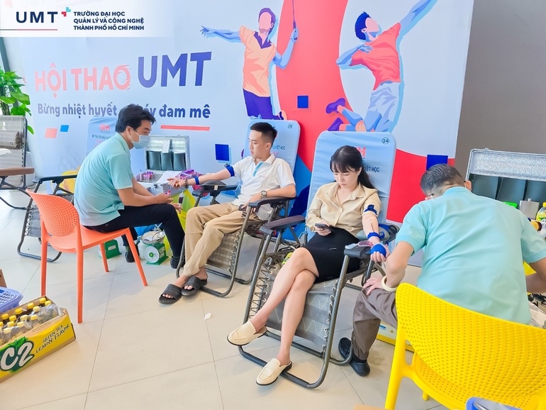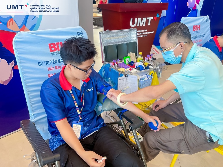 Với tinh thần "Một giọt máu - Ngàn niềm hy vọng", UMTers đã nhiệt tình tham gia hiến máu nhân đạo. Mỗi người tham gia đều được nhân viên y tế kiểm tra sức khỏe kỹ lưỡng, đảm bảo tuân thủ quy trình. Sau khi hiến máu, các bạn được tặng bánh, sữa và hướng dẫn thực hiện chế độ dinh dưỡng theo quy định.