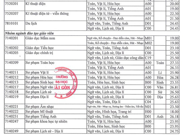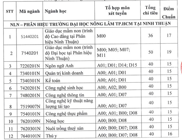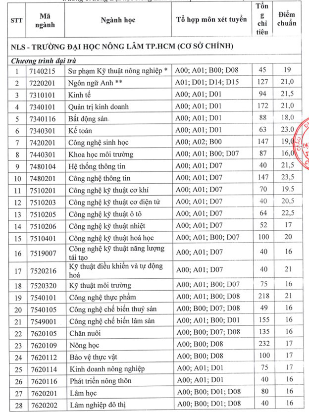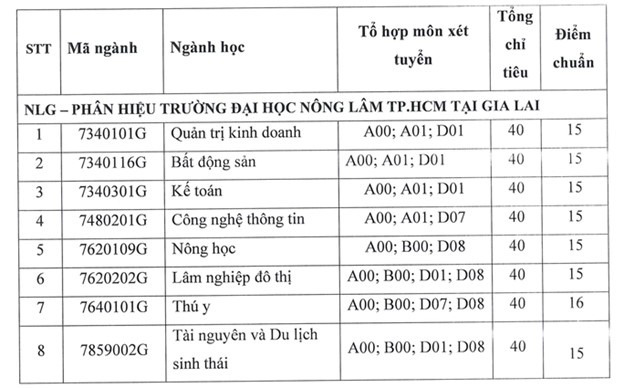 (*) Điểm trúng tuyển là điểm tổng (03) ba môn trong tổ họp môn và điểm ưu tiên (nếu có).