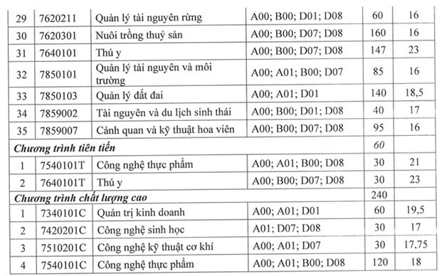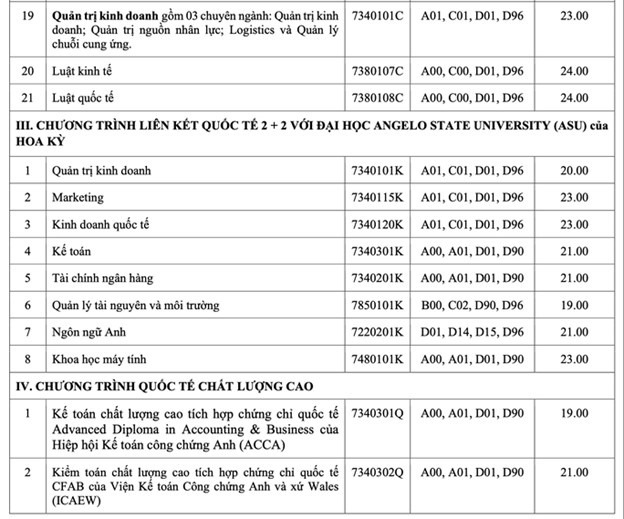 Điểm trúng tuyển nói trên áp dụng chung cho các tổ hợp xét tuyển của từng ngành theo từng chương trình đào tạo (chương trình chuẩn, chương trình đặc thù, chương trình chất lượng cao, chương trình chất lượng cao tiếng Anh toàn phần).
