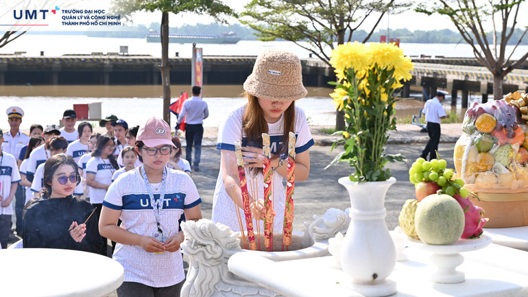 Chuyến tham quan bắt đầu với nghi thức trang trọng dâng hương tại tượng đài Đoàn tàu không số, nơi ghi dấu những chiến công oanh liệt của các chiến sĩ Hải quân trong cuộc kháng chiến bảo vệ Tổ quốc. Các sinh viên UMT cùng cán bộ, nhân viên Trường đã cùng thắp hương tại Đền thờ liệt sĩ, thể hiện lòng biết ơn sâu sắc đến các anh hùng đã hy sinh cho nền độc lập dân tộc. Đây là một hoạt động ý nghĩa, giúp sinh viên nhận thức rõ hơn về giá trị của sự hy sinh và những đóng góp thầm lặng của các thế hệ cha anh trong việc bảo vệ biển đảo.