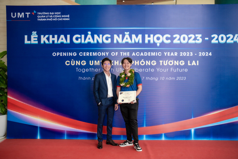 Duy Kha: Dạ em nghĩ có vài lý do cơ bản thôi. Một là với ngôi trường mới, em tin rằng thế hệ sinh viên đầu tiên như tụi em sẽ được thầy cô chú ý nhiều hơn, cơ hội trải nghiệm, thể hiện bản thân cũng dễ dàng hơn vì độ cạnh tranh không quá lớn (cười). Ngoài ra, UMT khẳng định yếu tố khai phóng, có nhiều mới mẻ hơn trong đào tạo, điều mà em không tìm thấy ở các trường khác. Lý do tiếp theo là em đã gửi thư ứng tuyển học bổng UMT và kết quả đã nhận được Học bổng Unique trị giá 200 triệu đồng. Việc nhận được học bổng đã góp phần giúp em chọn học tại UMT dù trước đó có tham khảo và nhận kết quả đậu vào nhiều trường khác.