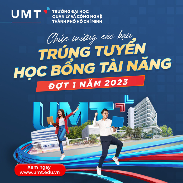 Trường Đại học Quản lý và Công nghệ TP.HCM (UMT) thông báo kết quả xét cấp học bổng tặng sinh viên Đợt 1 - năm 2023 như sau: