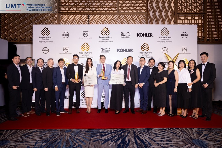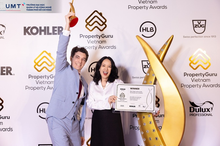 ThS. Huỳnh Thúy Phương - Phó Chủ tịch Hội đồng Trường, Phó Hiệu trưởng UMT; Thành viên Hội đồng Quản trị Tập đoàn Kiến Á cùng Ông Antoine Danielli - Đại diện PierreVal (Pháp), nhận giải thưởng Best High-End Condo Development (Dự án căn hộ cao cấp tốt nhất).
