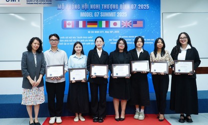 Sau hai vòng tranh biện đầy kịch tính, Vòng chung kết cuộc thi UMT Debate 2025 đã chính thức khép lại với phần thi mô phỏng Hội nghị Thượng đỉnh G7, mang đến màn đối đầu đỉnh cao giữa những “nhà lãnh đạo trẻ” đến từ 7 đội thi xuất sắc nhất.