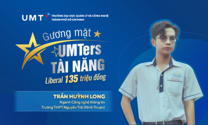 UMT rất vui mừng khi được trao cho Huỳnh Long cơ hội học tập trong môi trường quốc tế với Học bổng toàn khóa Liberal 135 triệu đồng, ngành Công nghệ thông tin, với những thành tích học tập và đóng góp nổi bật trong hoạt động phong trào.
