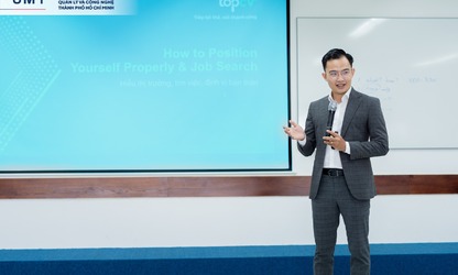 Ngoài lợi thế trong việc mở rộng thị trường lao động thì Hội nhập quốc tế và Cách mạng công nghệ 4.0 mang lại nhiều thách thức cho người lao động khi yêu cầu của nhà tuyển dụng ngày càng cao để đáp ứng với sự cạnh tranh của thị trường. Để chuẩn bị hành trang vững chắc cho sinh viên và tự tin phát triển sự nghiệp sau khi ra trường, UMT đã phối hợp cùng TopCV Việt Nam tổ chức Workshop “How to Position Yourself Properly and Job Search” vào sáng ngày 24/11/2023.