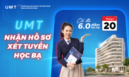 Từ ngày 20/1/2024, Trường Đại học UMT chính thức nhận hồ sơ xét tuyển theo phương thức xét kết quả học tập THPT (học bạ) đợt 1 đối với 8 ngành đào tạo bậc đại học hệ chính quy chỉ từ 6.0 điểm, đồng thời dành tặng 68 tỷ đồng học bổng cho tân sinh viên khóa 3 năm 2024.