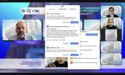 Hội thảo quốc tế về Khoa học Thể thao và Sức khỏe lần thứ 6 (The 6th International Conference on Sports Science and Health - The 6th ICSSH), với chủ đề “Tăng công suất, sức mạnh tổng hợp và năng suất của thể thao để đẩy nhanh quá trình phục hồi kinh tế sau đại dịch” (Increasing the Capacity, Synergy, and Productivity of Sports to Accelerate the Post-Pandemic Economic Recovery) diễn ra vào ngày 29/9/2022, do Trường Đại học Negeri Malang (Indonesia) tổ chức, Trường Đại học UMT đồng hành cùng các trường đại học và đơn vị thể thao uy tín hỗ trợ.