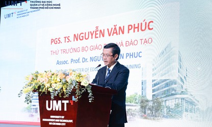 Với điểm đặc biệt là lần đầu tiên tuyển sinh, Thứ trưởng Bộ GD&ĐT Nguyễn Văn Phúc đã phát biểu và giao nhiệm vụ trọng tâm trong lễ khai giảng của Trường Đại học Quản lý và Công nghệ TP.HCM (UMT).
