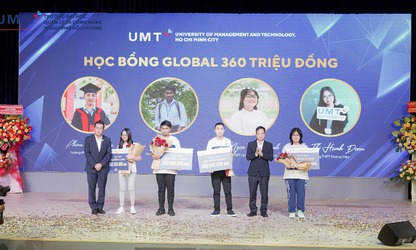 Trường Đại học Quản lý và Công nghệ TPHCM (UMT) dành 100 suất học bổng cho tân sinh viên với tổng giá trị hơn 8 tỷ đồng. Trong đó có các gói học bổng toàn khóa trị giá 360 triệu đồng, 200 triệu đồng và các gói học bổng cho năm học đầu tiên. Nhân dịp khai giảng vừa qua, UMT đã trao bốn học bổng toàn khóa trị giá 360 triệu đồng/phần cho bốn sinh viên xuất sắc.