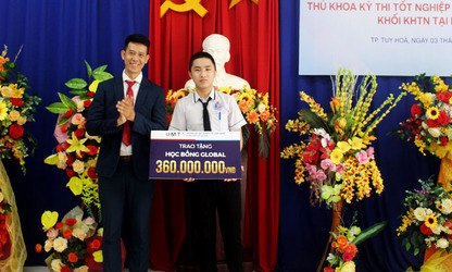 Ngày 3/8, Trường phổ thông Duy Tân (TP Tuy Hòa) tổ chức lễ khen thưởng và trao học bổng 4 năm học đại học cho Phan Vĩnh Tiến, lớp 12QT3 của trường.