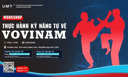 Trong cuộc sống hiện đại, kỹ năng tự vệ không chỉ là hành trang cần thiết mà còn là lá chắn giúp người trẻ vững vàng trước mọi tình huống. Với mong muốn trang bị cho sinh viên những kỹ năng đó, Trường Đại học UMT đã tổ chức Workshop “Thực hành Kỹ năng Tự vệ - Vovinam” (Việt Võ Đạo), mang đến một không gian học tập thực tiễn, lan tỏa tinh thần rèn luyện thể chất, bản lĩnh và sự chủ động trong cộng đồng sinh viên UMT.