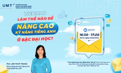 Tiếng Anh chính là công cụ để các bạn trở thành công dân toàn cầu, nhưng rất nhiều bạn học sinh chưa tìm được phương pháp học Tiếng Anh hiệu quả. Do đó, ngày 5/8/2022, Trường Đại học UMT đã tổ chức Webinar trực tuyến trên Zoom và livestream trên Fanpage để giúp các tân sinh viên có bí quyết học tập và cải thiện Tiếng Anh khi lên đại học.